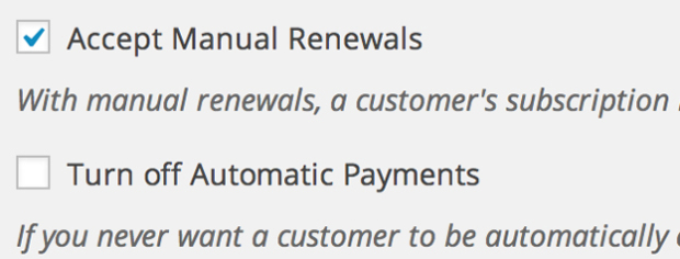You can offer your customers multiple gateway options – more than 20 payment gateways can process automatic recurring payments and any payment gateway can be used to process manual renewal payments.